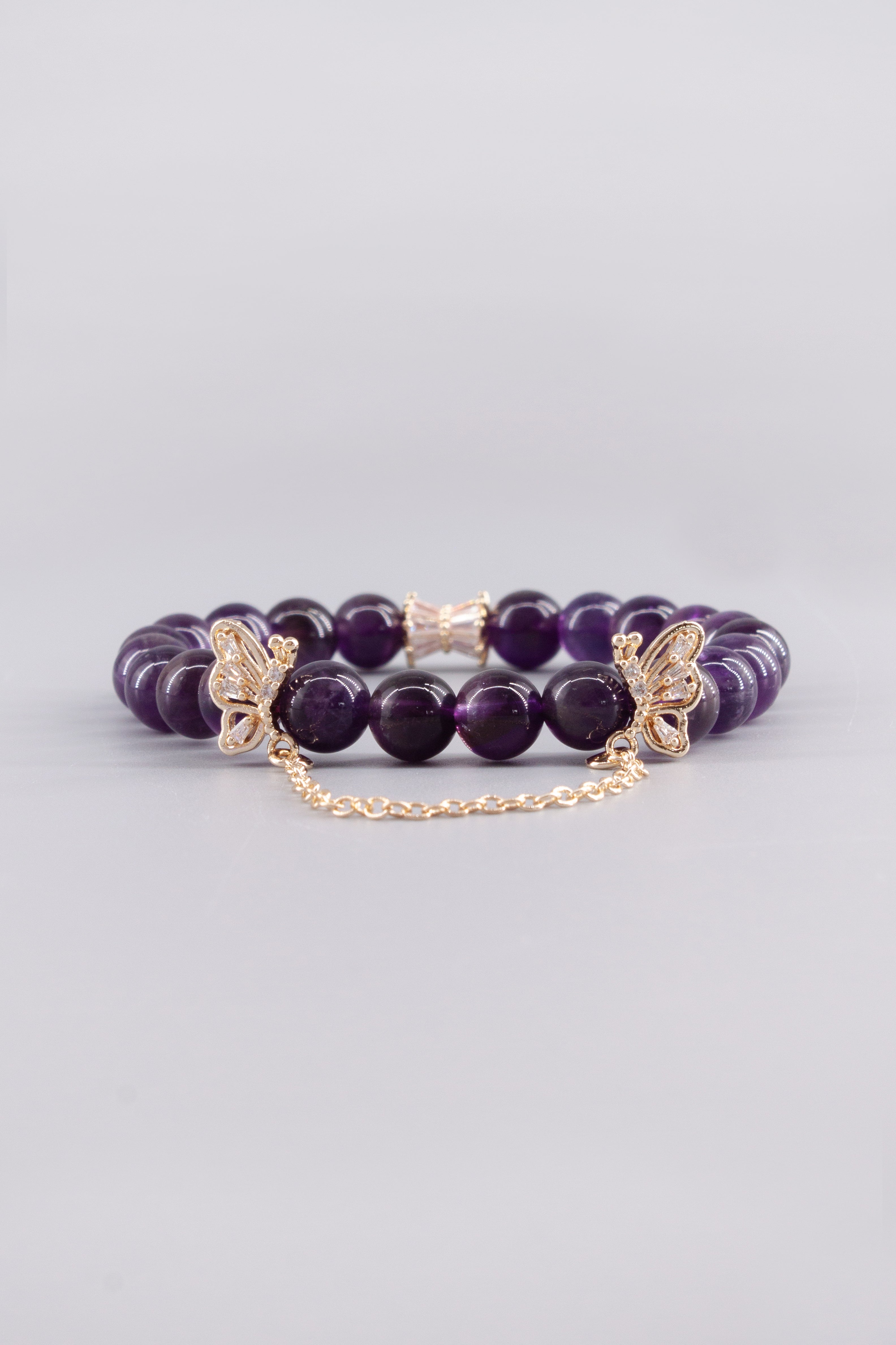 Dieses Armband wird von Hand gefertigt – aus natürlichem Amethyst und langlebigem, farbbeständigem Kupfer mit spezieller Beschichtung.