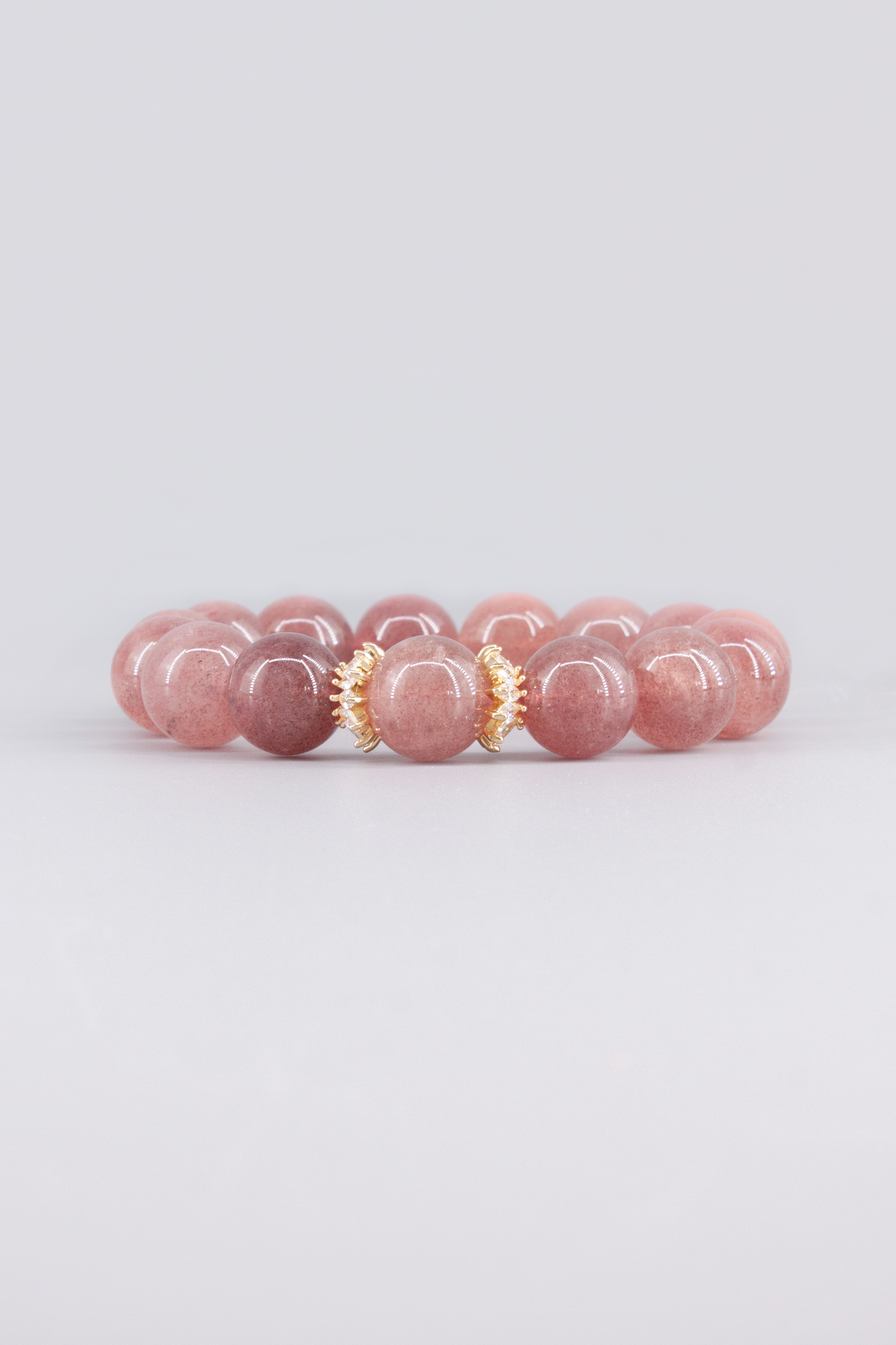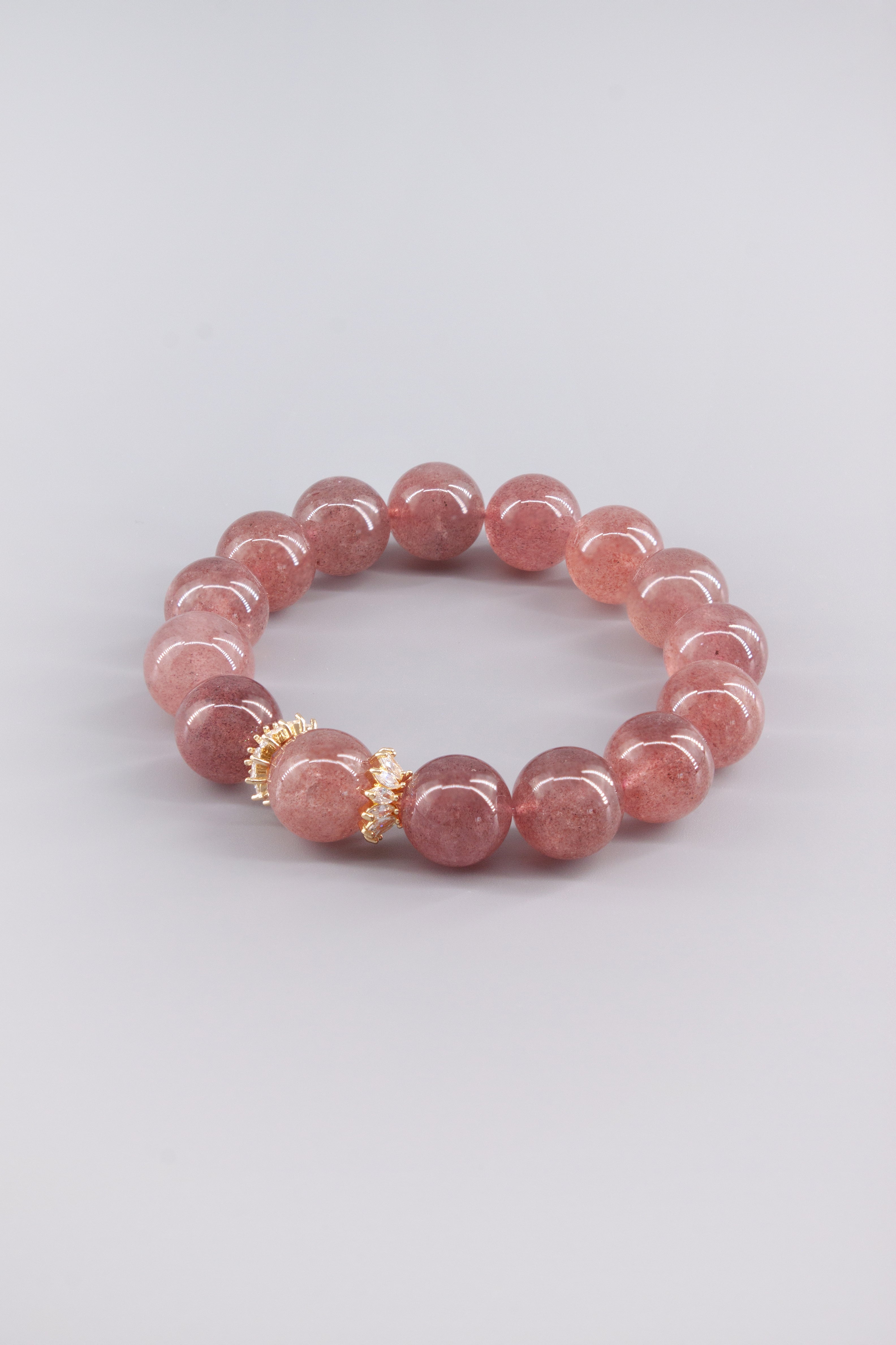 Dieses Armband wird von Hand gefertigt – aus natürlichem Erdbeerquarz und langlebigem, farbbeständigem Kupfer mit spezieller Beschichtung.