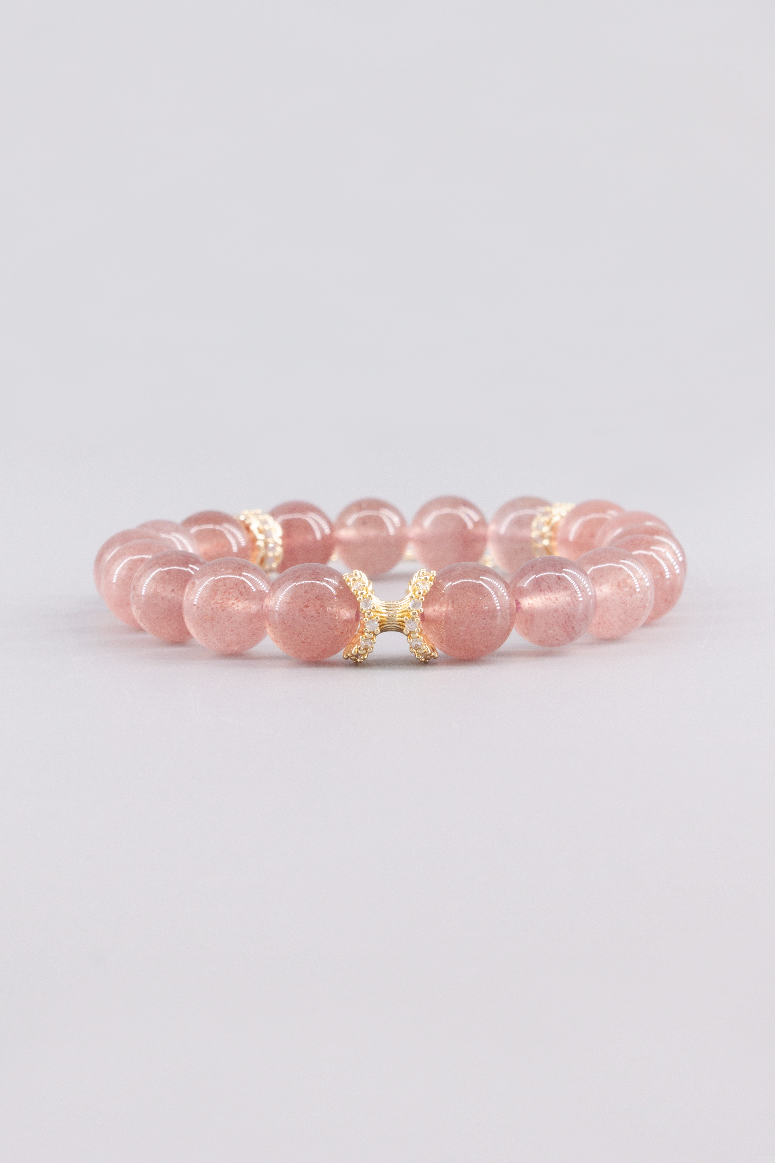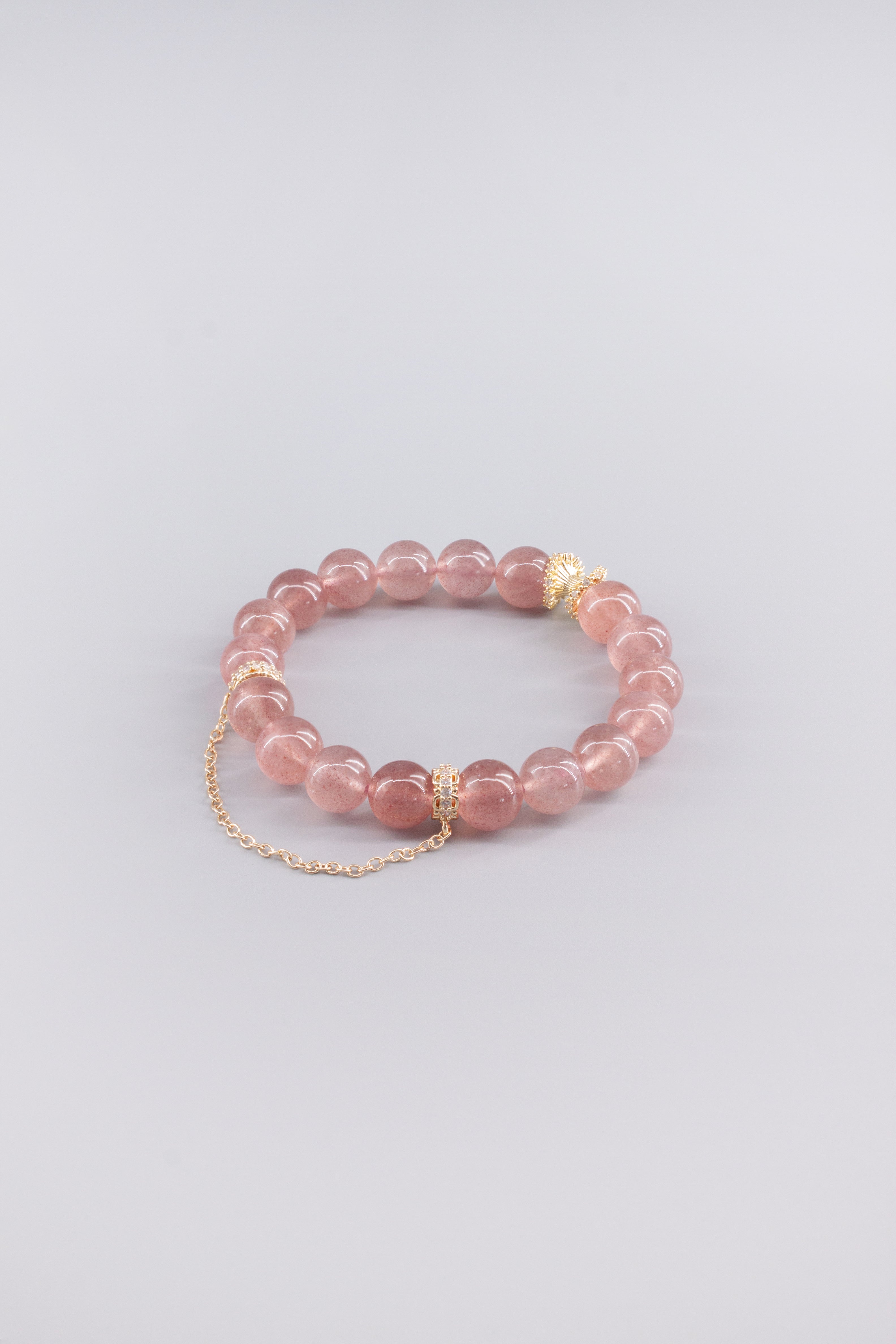 Dieses Armband wird von Hand gefertigt – aus natürlichem Erdbeerquarz und langlebigem, farbbeständigem Kupfer mit spezieller Beschichtung.