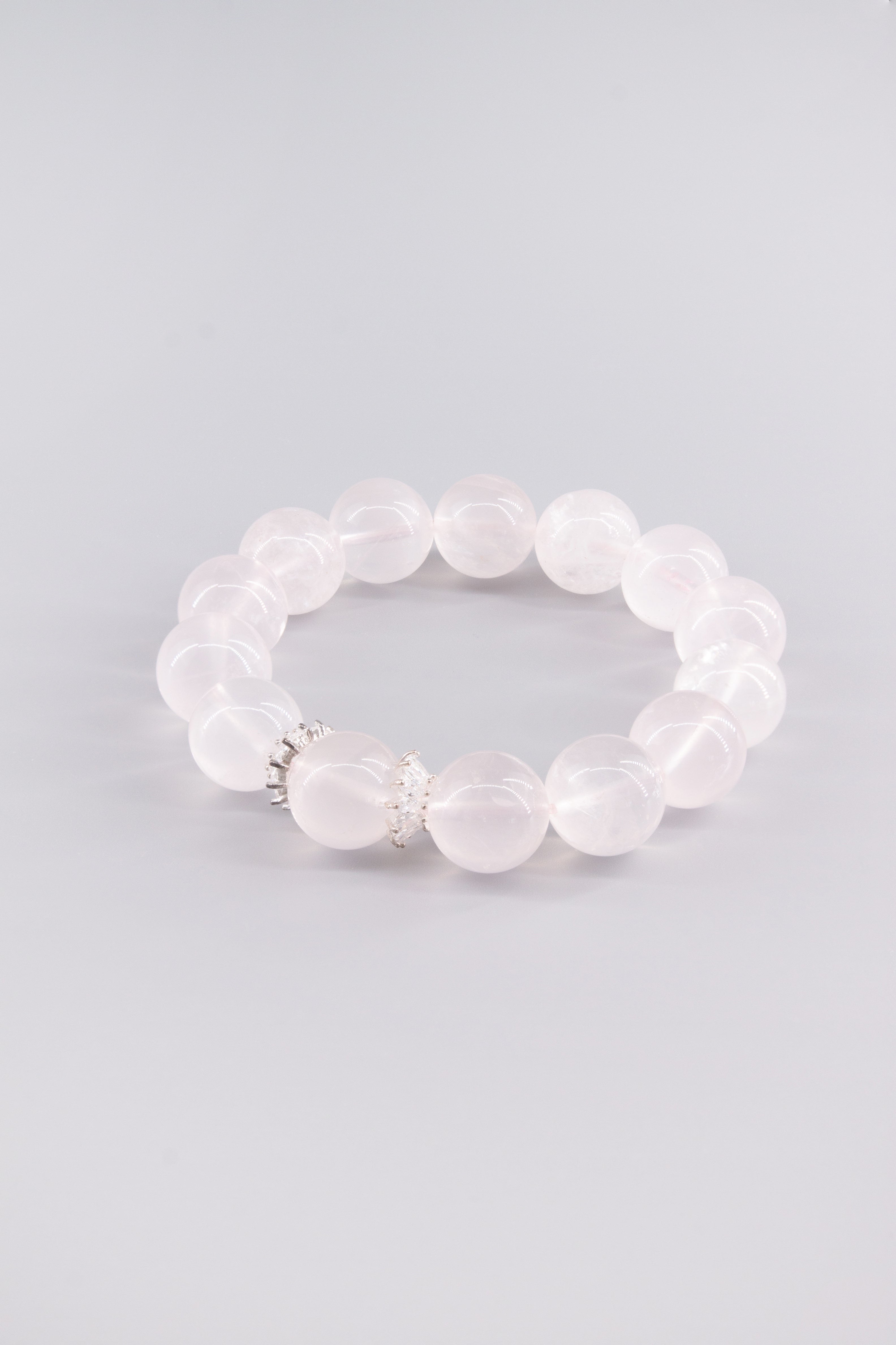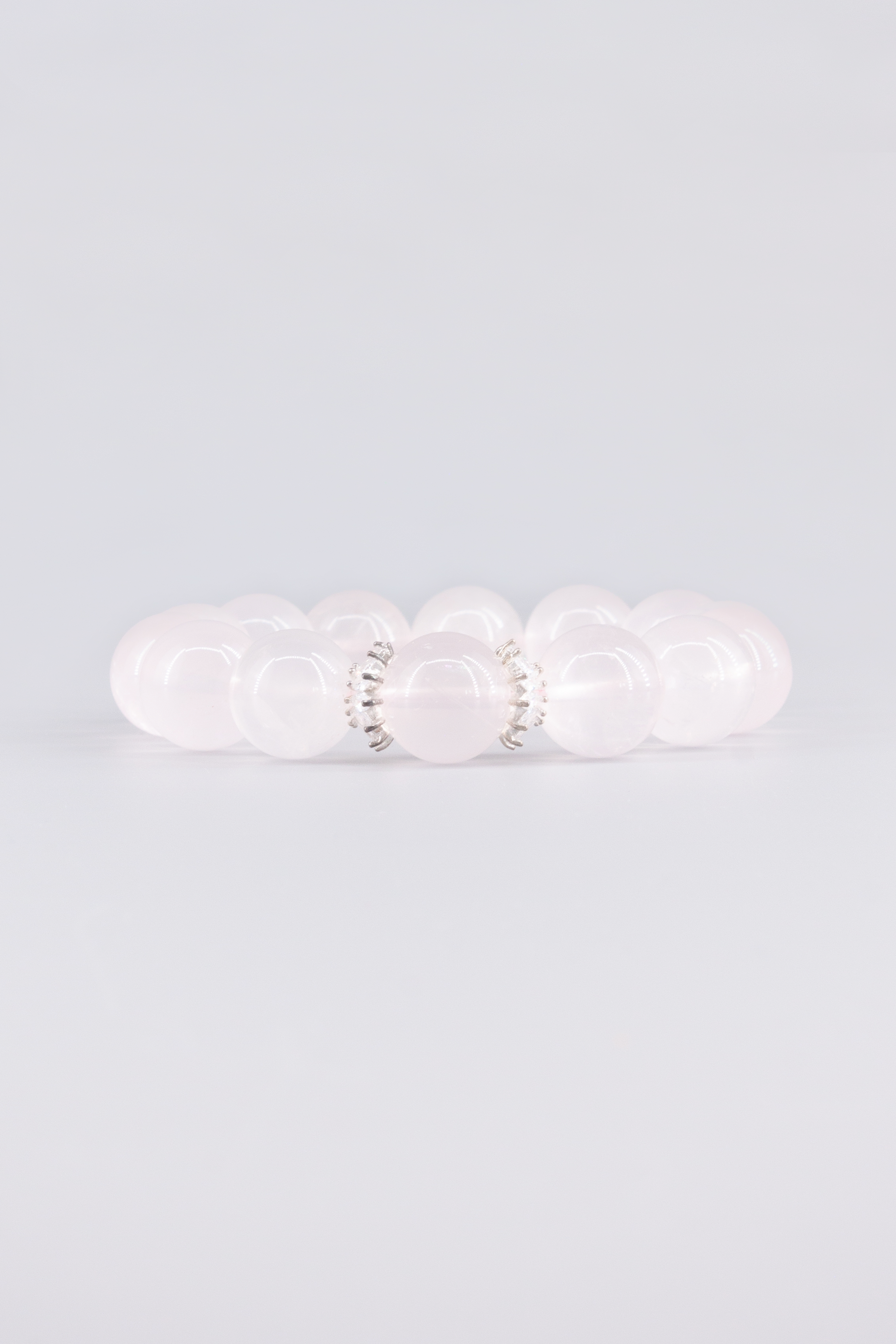 Dieses Armband wird von Hand gefertigt – aus natürlichem Rosenquarz und langlebigem, farbbeständigem Kupfer mit spezieller Beschichtung.