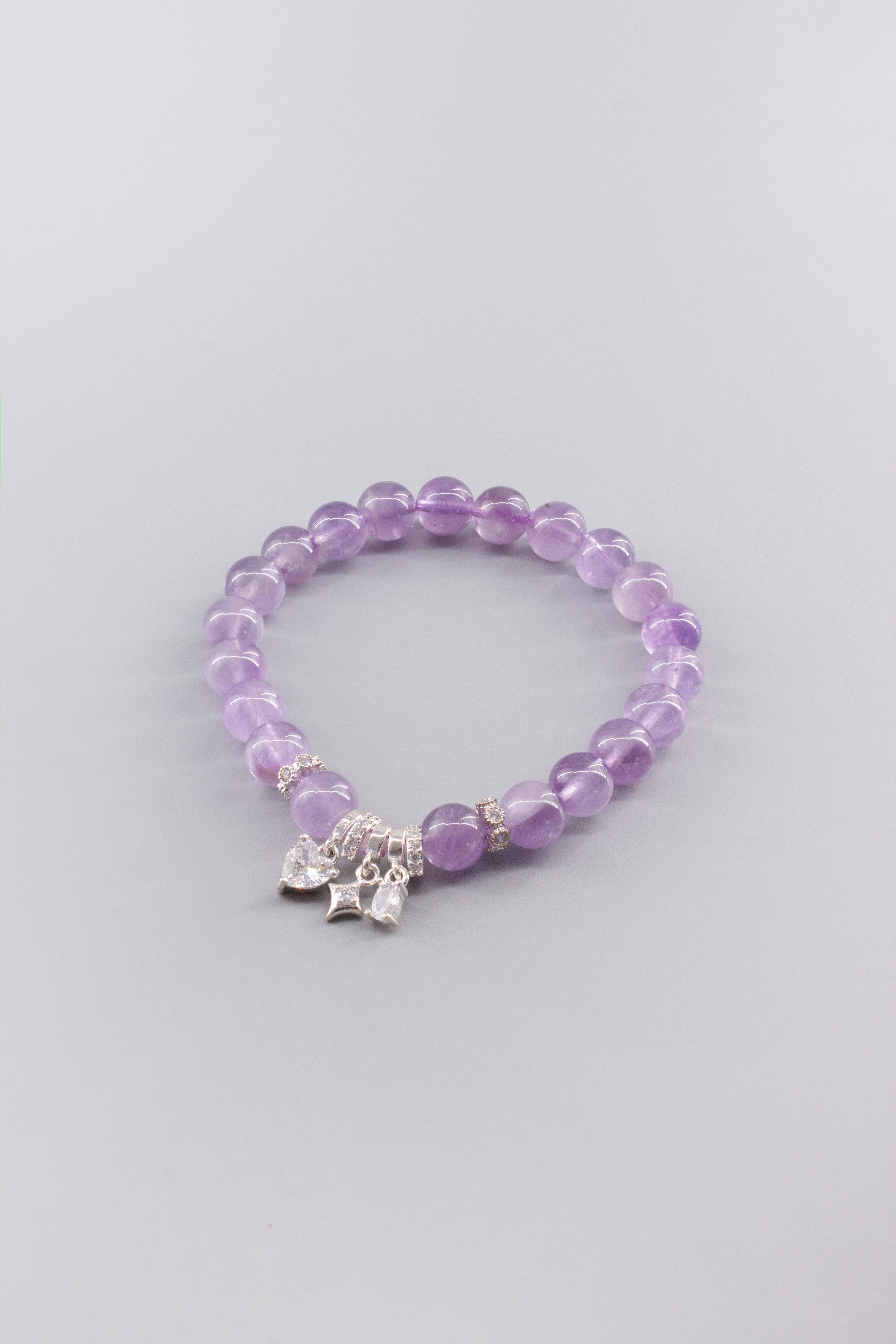 Dieses Armband wird von Hand gefertigt – aus natürlichem Amethyst und langlebigem, farbbeständigem Kupfer mit spezieller Beschichtung.