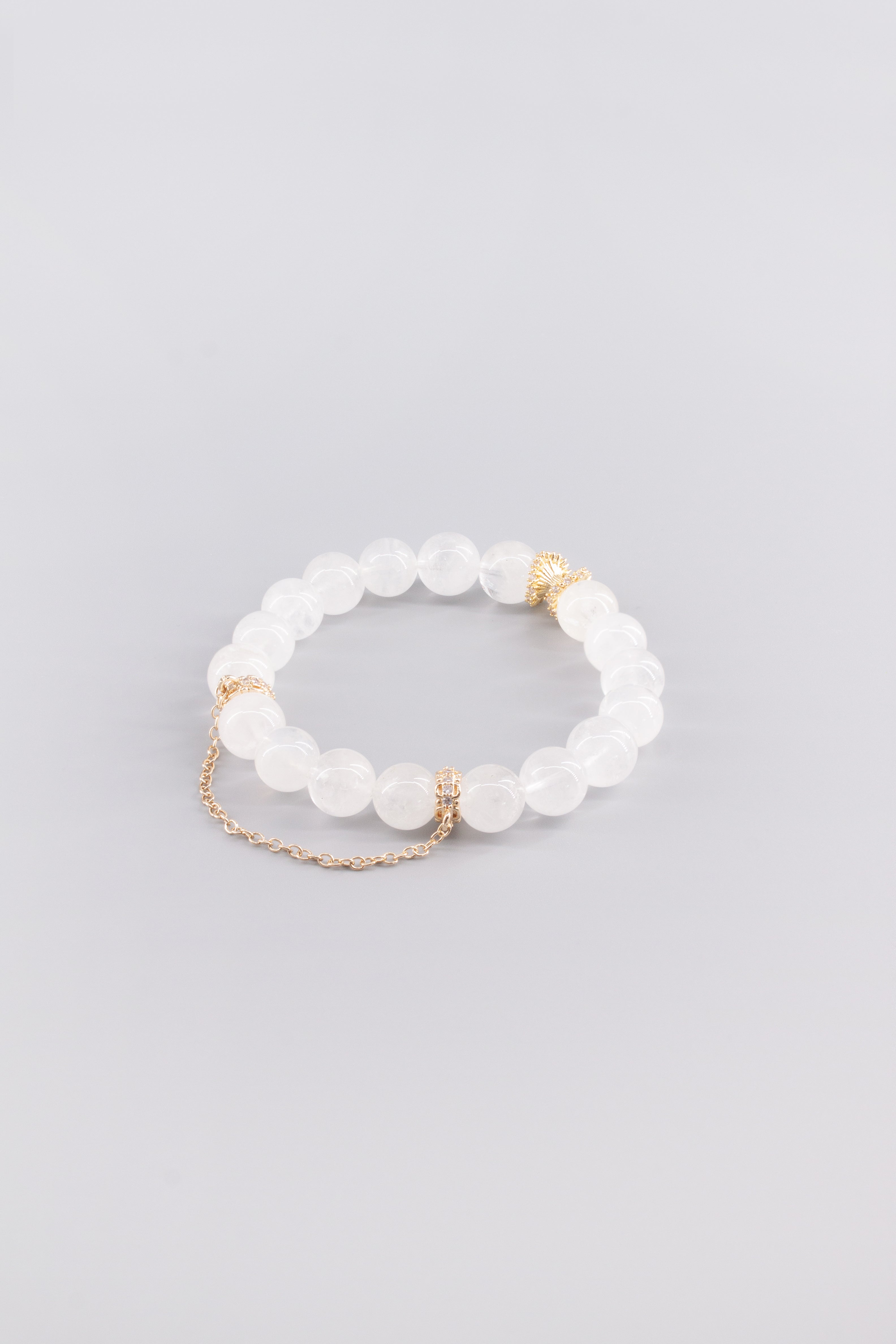 Dieses Armband wird von Hand gefertigt – aus natürlichem Bergkristall und langlebigem, farbbeständigem Kupfer mit spezieller Beschichtung.