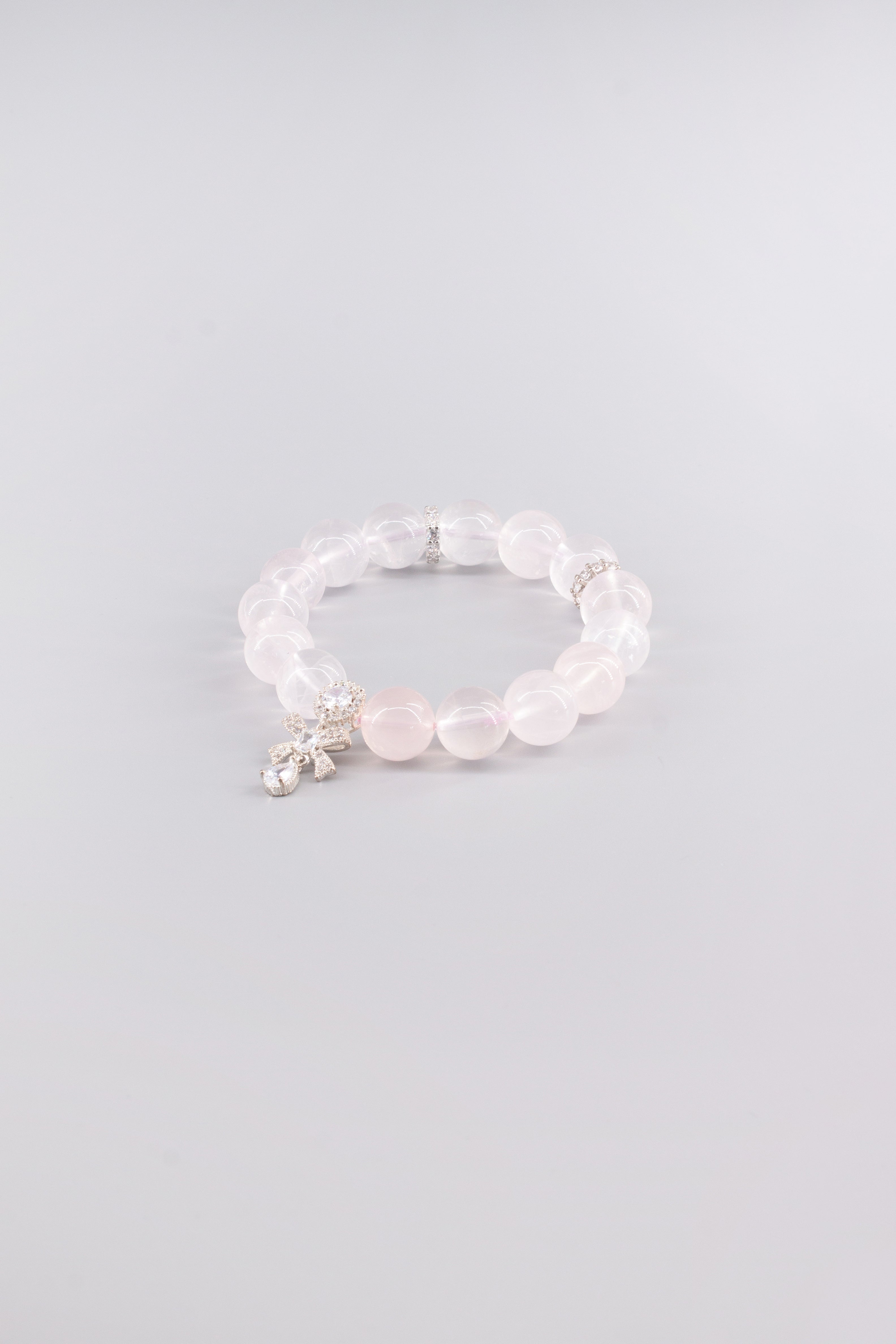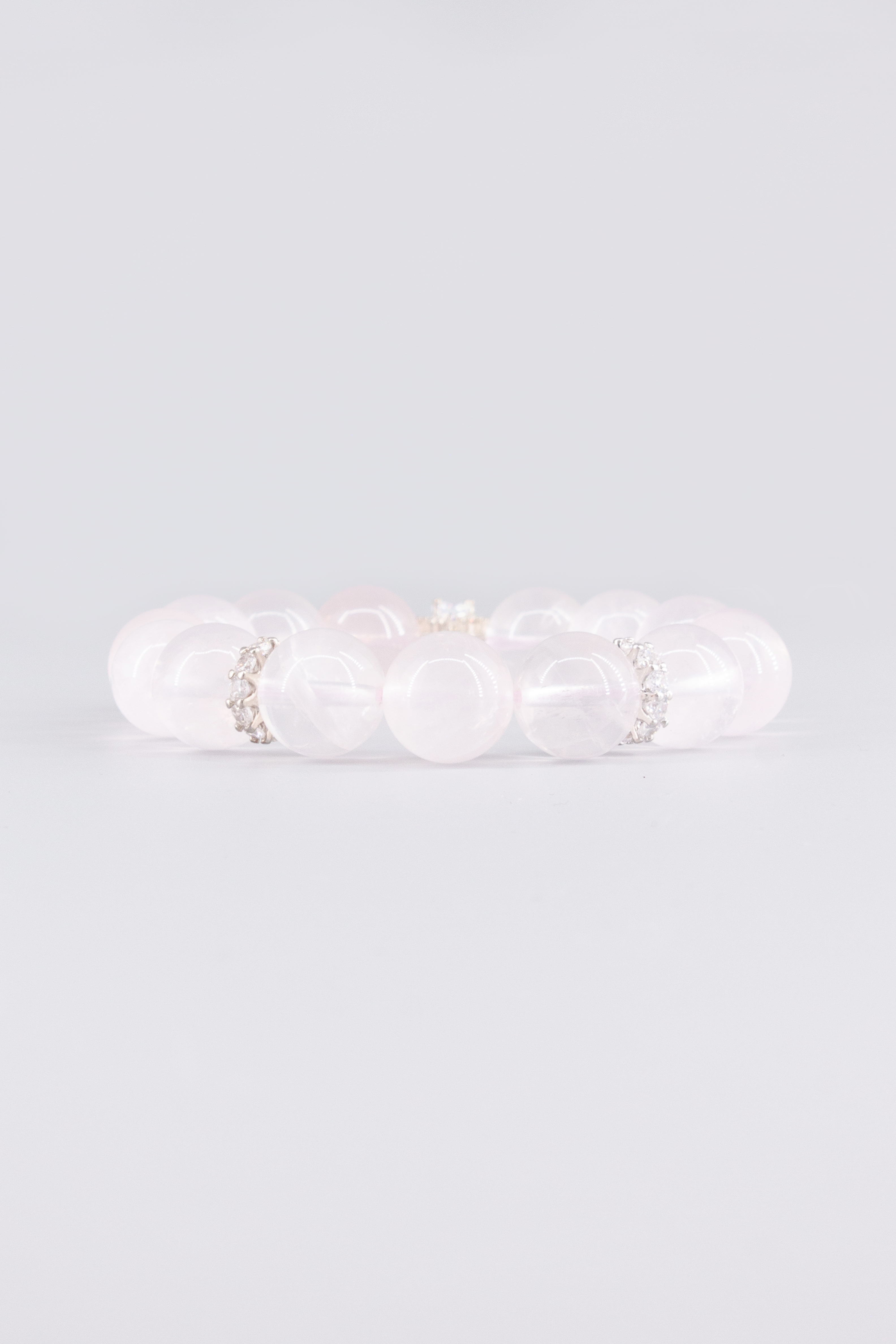 Dieses Armband wird von Hand gefertigt – aus natürlichem Rosenquarz und langlebigem, farbbeständigem Kupfer mit spezieller Beschichtung.